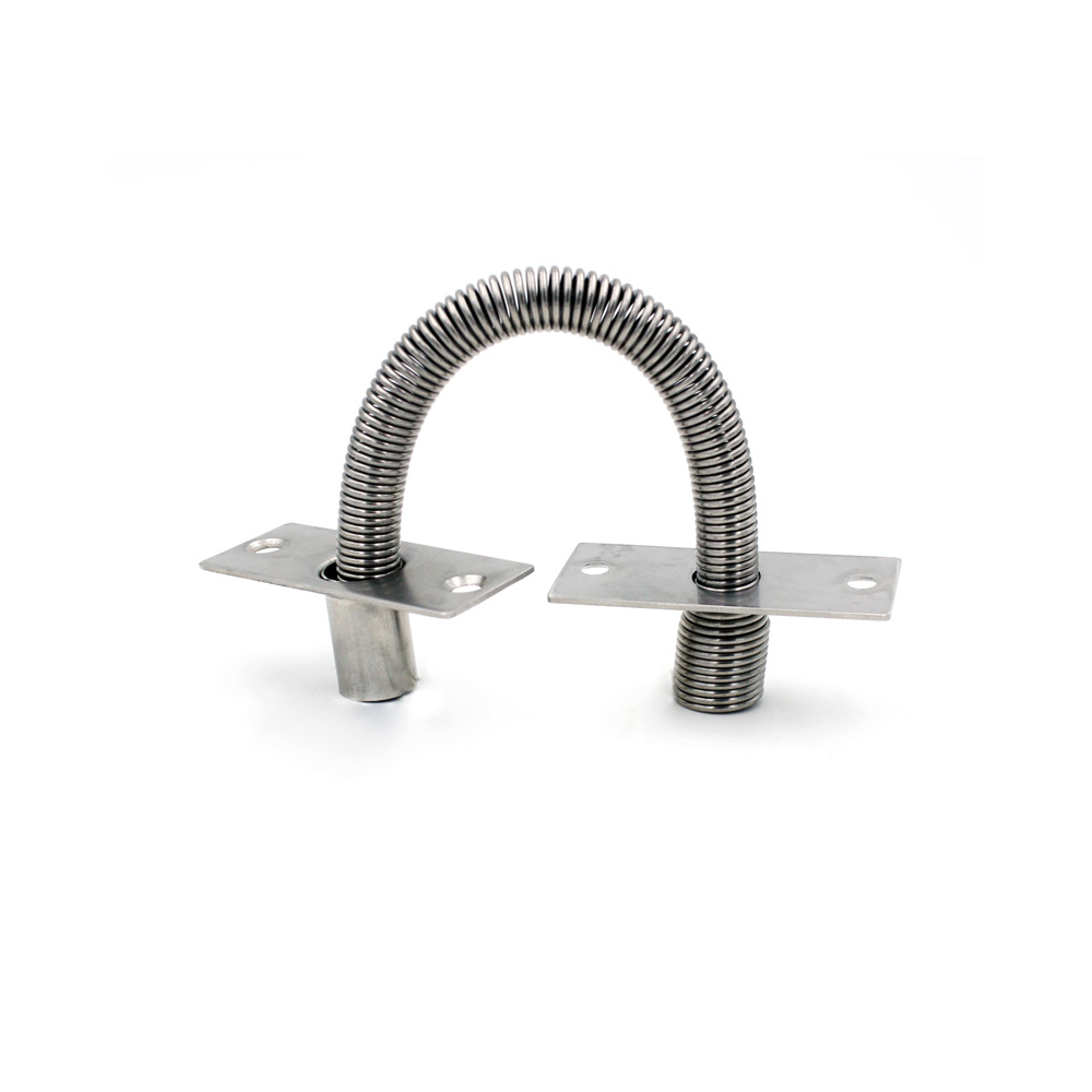 Armored Door Loop; Surface-mount; Mounting screws included. Material:304 Stainless steel Size For Metar Plate:20*50mm Spring Size:Φ7*Φ11*130mm Inner Diameter:7mm Installation Diameter:Φ15mm/Φ11mm Weight:0.06kg